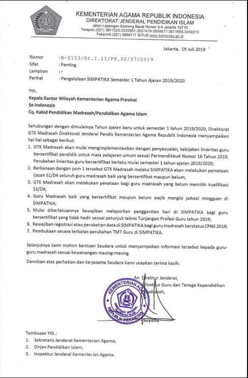 Surat Edaran Pengelolaan SIMPATIKA Semester Ganjil 2019/2020 | N.A.P.A