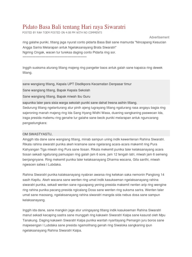 Contoh Contoh Pidato Bahasa Bali | informasi lowongan pekerjaan bulan ini