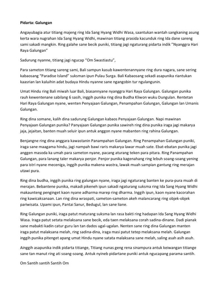 Pidato Bahasa Bali Tentang Hari Raya
