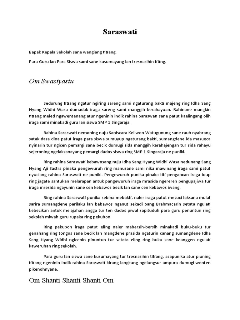 tugas bahasa bali kolektor kecebong.docx - Sambrama Wacana Nyanggra Piodalan Saraswati Dumun tiang sampun ngicen conto pidarta bali utawi pidato mabasa | Course Hero