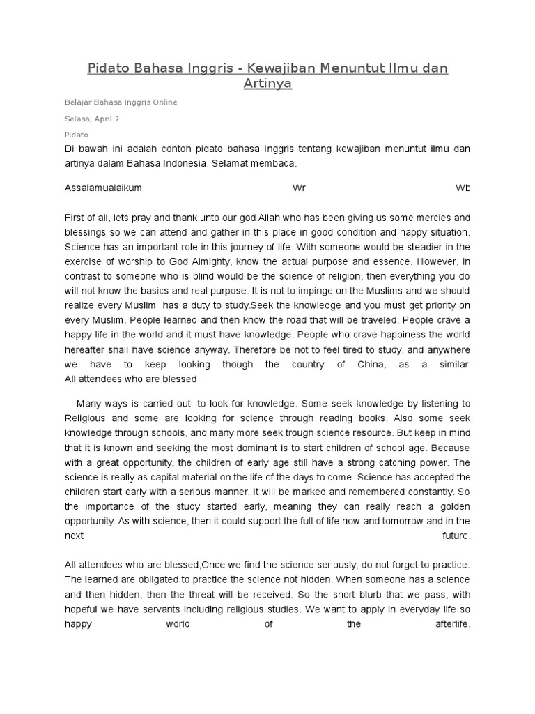 DOC) Contoh pidato bahasa Inggris tentang pendidikan di hari besar pendidikan | chaisya tog - Academia.edu