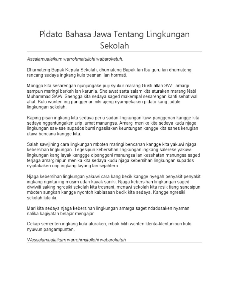 Contoh Pidato Bahasa Jawa Tentang Kebersihan | Bahasa, Pembersihan, Iman