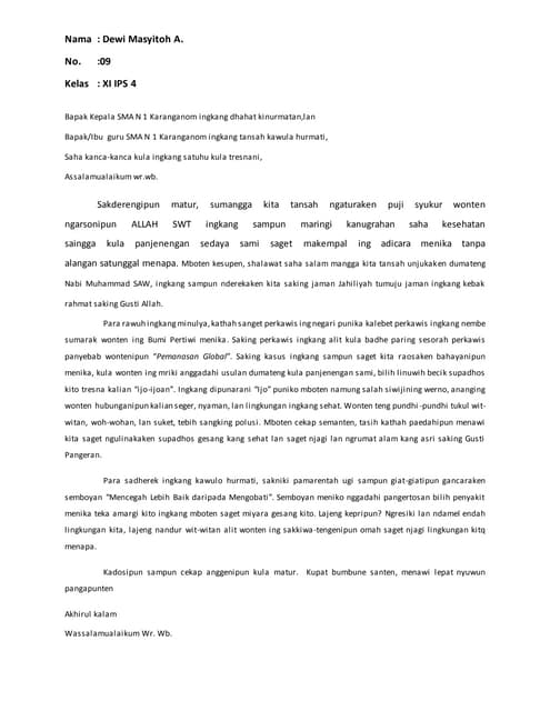 Pidato bahasa jawa lingkungan sekolah