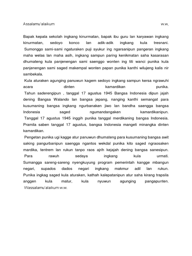 Pidato Bahasa Jawa Tentang Pengetan 17 Agustus Ing Sekolah