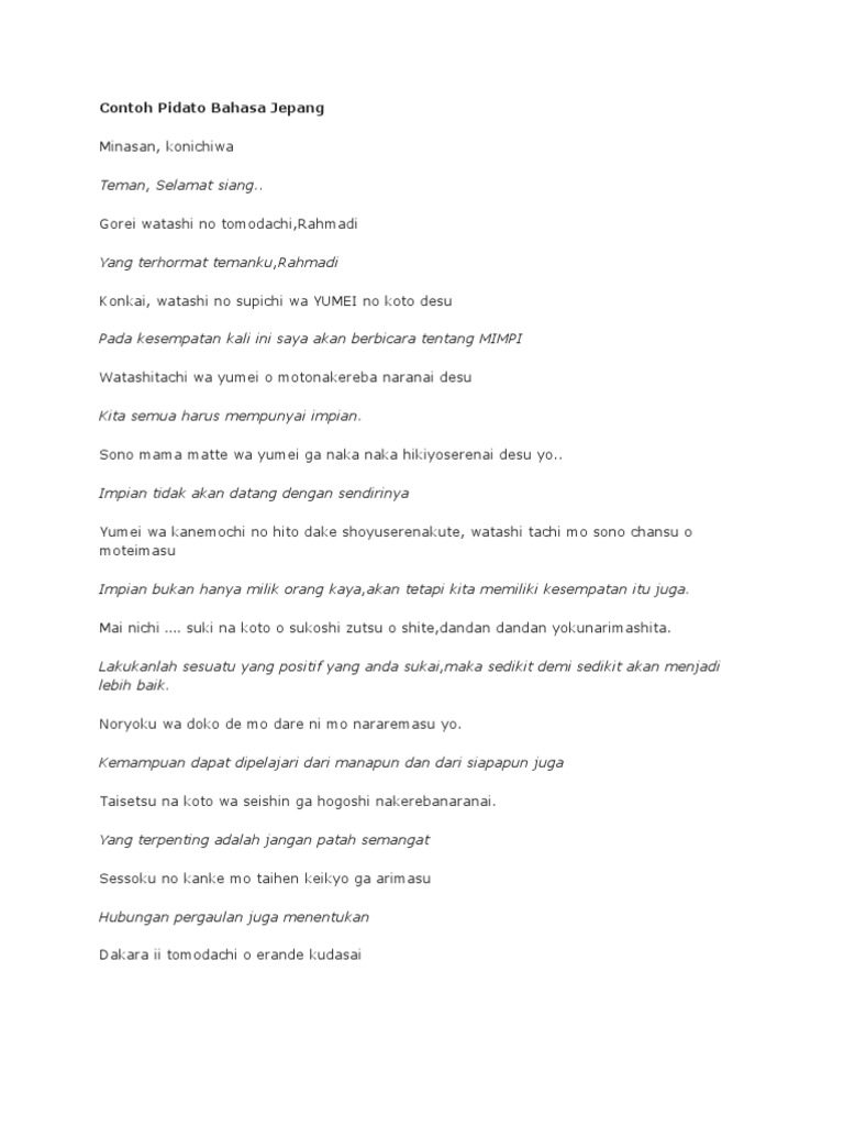 DOC) Pidato Bahasa Jepang | Teknik Sipil Universitas Sriwijaya - Academia.edu