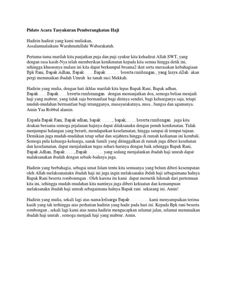 DOC) CONTOH NASKAH PIDATO PELEPASAN JEMAAH HAJI | Triawan Wawan - Academia.edu