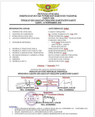 Surat Edaran dan Pedoman Pelaksanaan Upacara Peringatan Hari Guru Nasional (HGN) Tahun 2016 dan HUT PGRI Ke-71 Tahun 2016 - Dadang JSN
