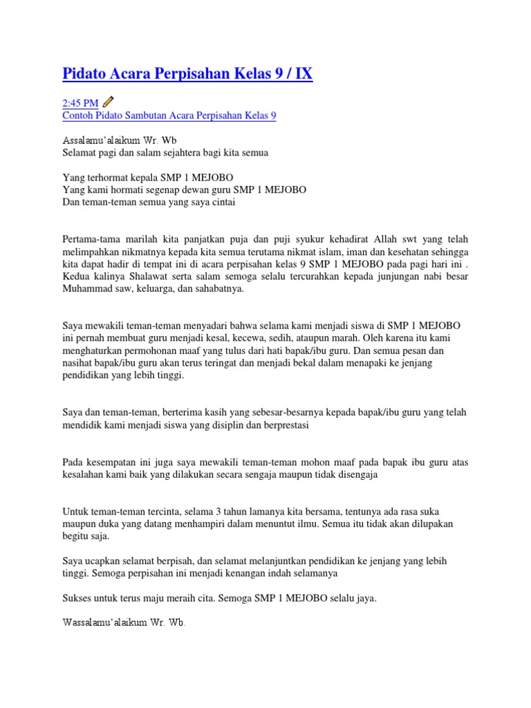 DOC) Contoh Pidato Perpisahan KELAS 9 | JayKummarhe Zazg - Academia.edu