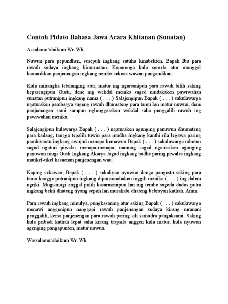 Contoh Teks Pidato Bahasa Jawa Khitanan - Berbagai Teks Penting