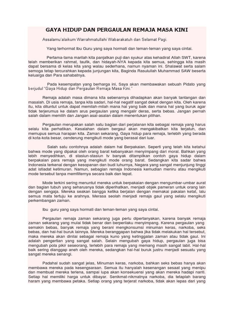 Pidato Gaya Hidup Remaja Masa Kini By : Eliezer SMK N 2 Batam
