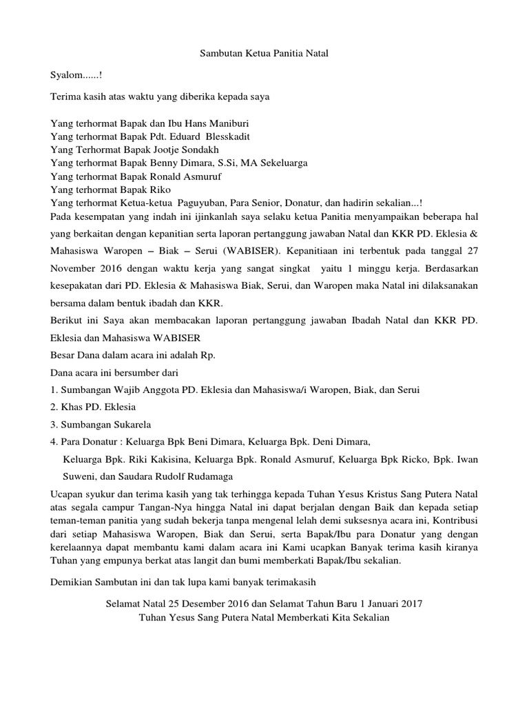 Contoh Kata Sambutan Ketua Panitia Natal Punguan Marga | Dunia Belajar