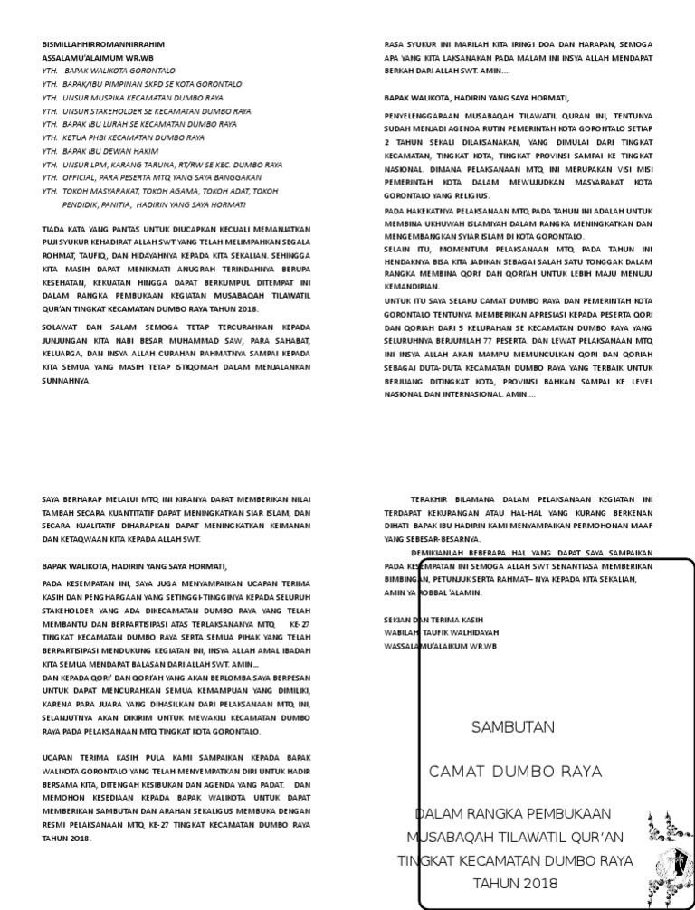 Contoh Kata Sambutan Pembukaan Acara Mtq | Blog Pendidikan