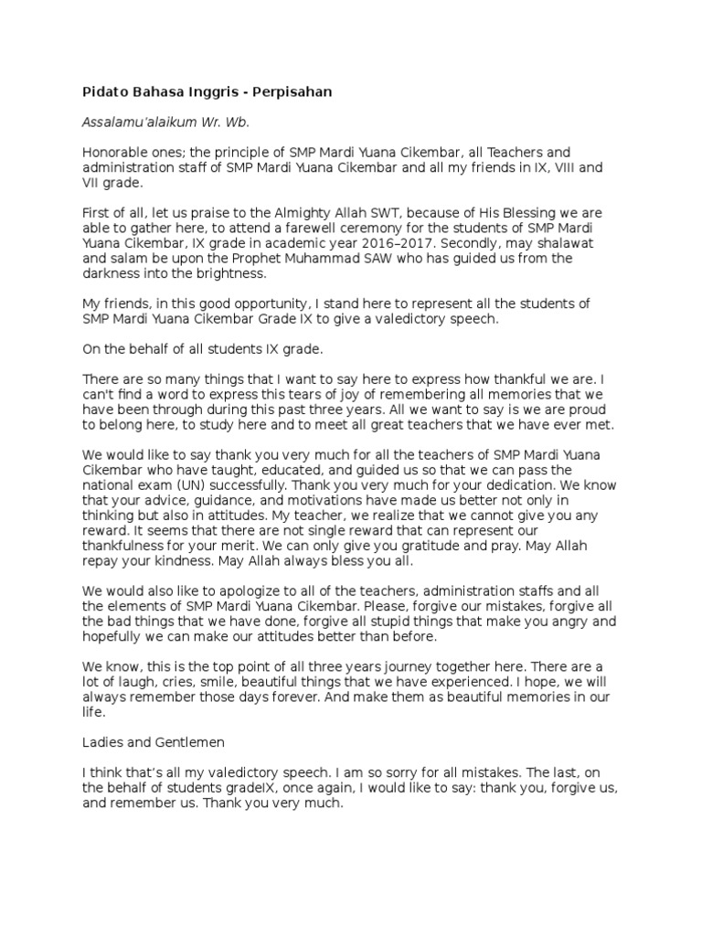 Contoh Pidato Perpisahan Bahasa Inggris dan Terjemahannya - Paja …