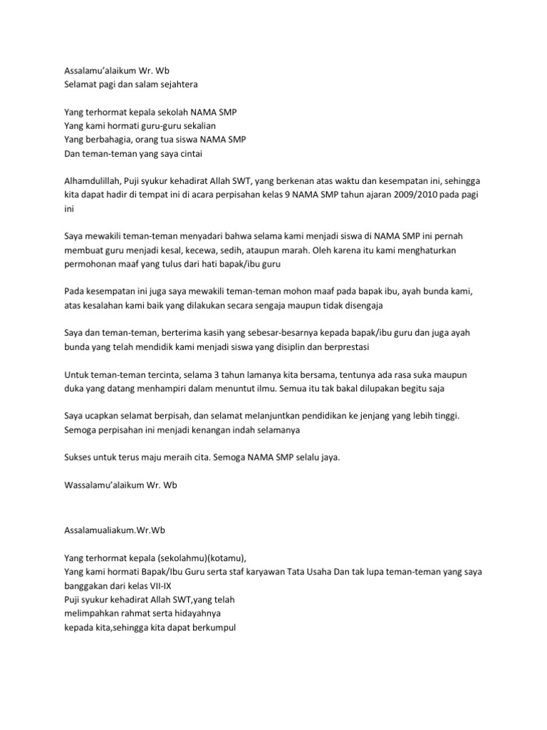 DOC) Contoh Pidato Perpisahan KELAS 9 | JayKummarhe Zazg - Academia.edu