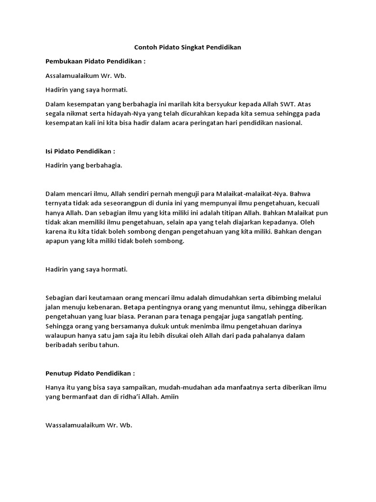 DOC) Contoh Pidato Singkat Pendidikan | indah mokobombang - Academia.edu
