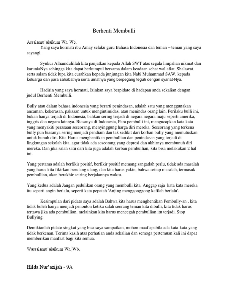 DOC) Zahra Nur Syabani X – PM 2 " PIDATO TENTANG BULLYING " | zahra syabani - Academia.edu