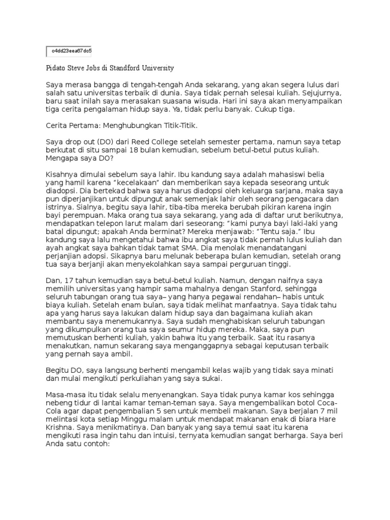 Pidato Steve Jobs di Universitas Stanford | Deya Daycee