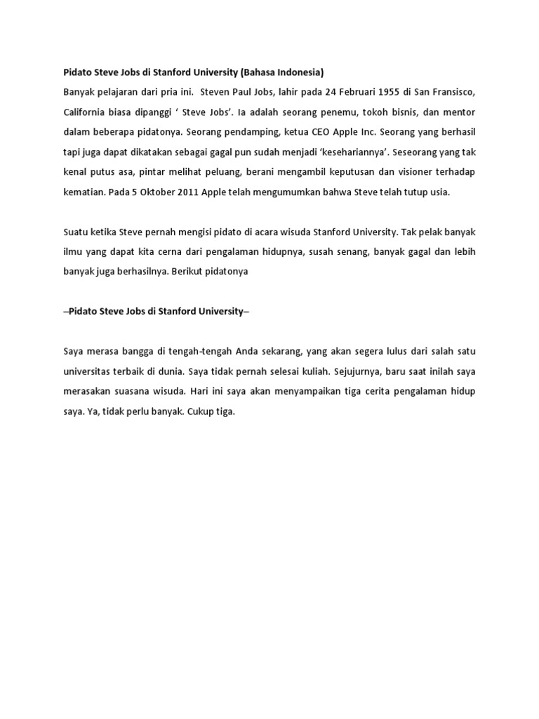 Pidato Steve Jobs di Stanford University (Bahasa Indonesia)
