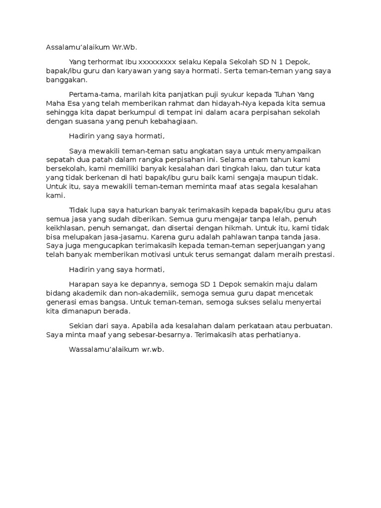 Pidato Perpisahan Kelas 6 SD - [DOCX Document]