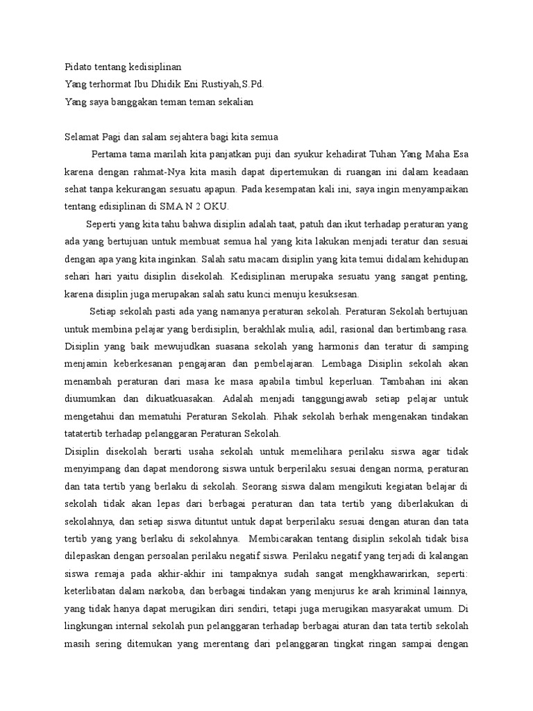 DOC) Contoh Pidato : Kedisiplinan | fergya sugandhi - Academia.edu