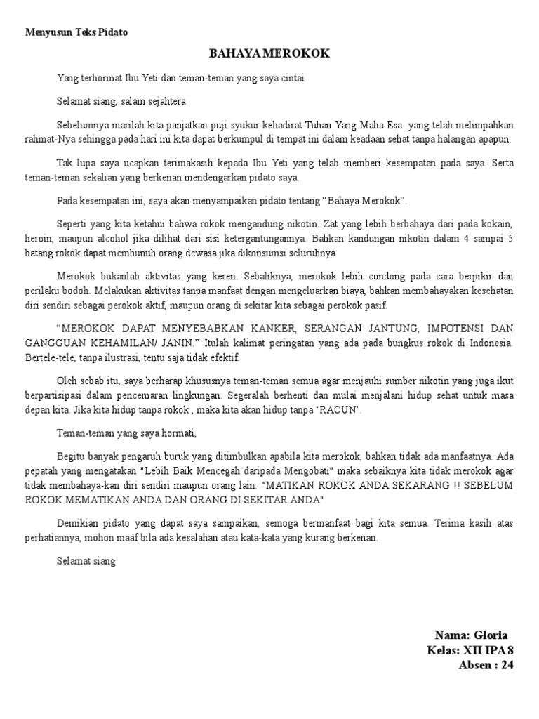 Pidato bahasa indonesia bahaya merokok bagi kesehatan
