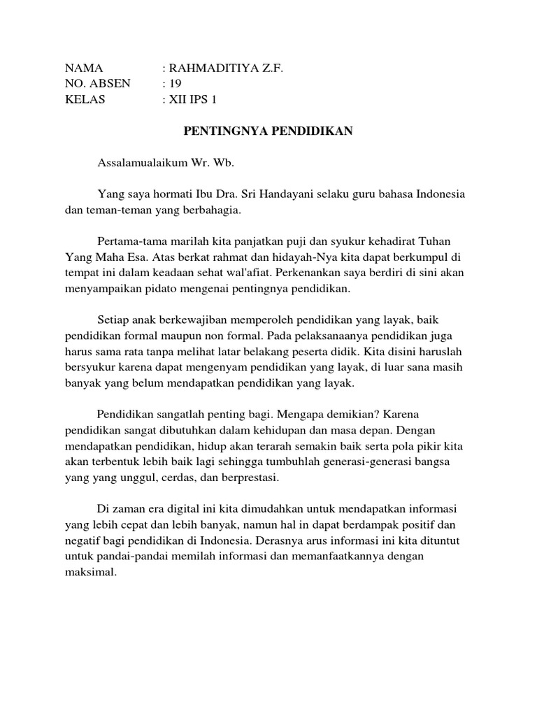 DOC) Naskah Teks Pidato Pentingnya Pendidikan Moral | CBC Syarif …