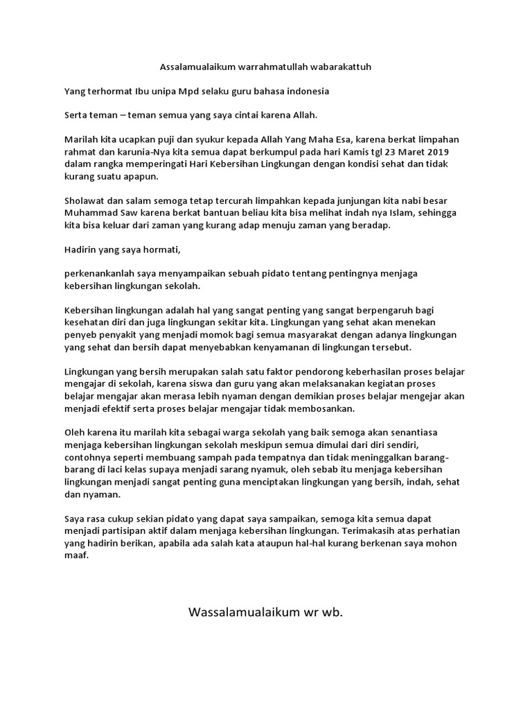 DOC) Pidato Kebersihan Lingkungan Sekolah | aditya hidayat - Academia.edu