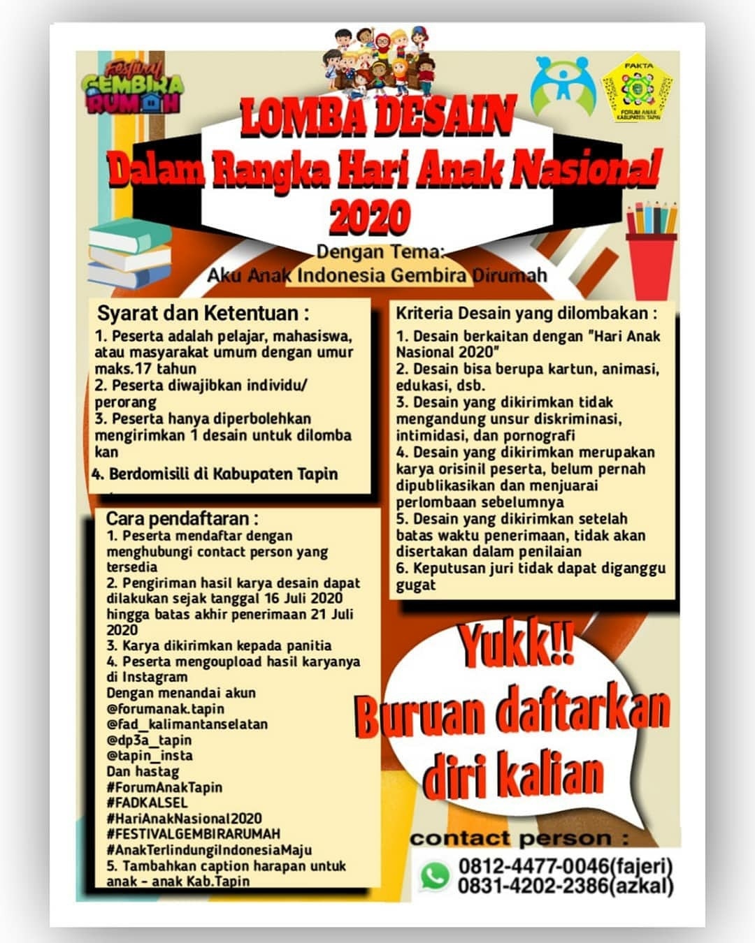 RSHS BANDUNG on Twitter: “Anak Indonesia Gembira di Rumah - Hari Anak Nasional 2020- Ikuti setiap kegiatannya ya.. lomba poster, fotografi& video cuci tangan anak. Ayo..buat seseru mungkin ! Narahubung: Shanti 08122125968 /