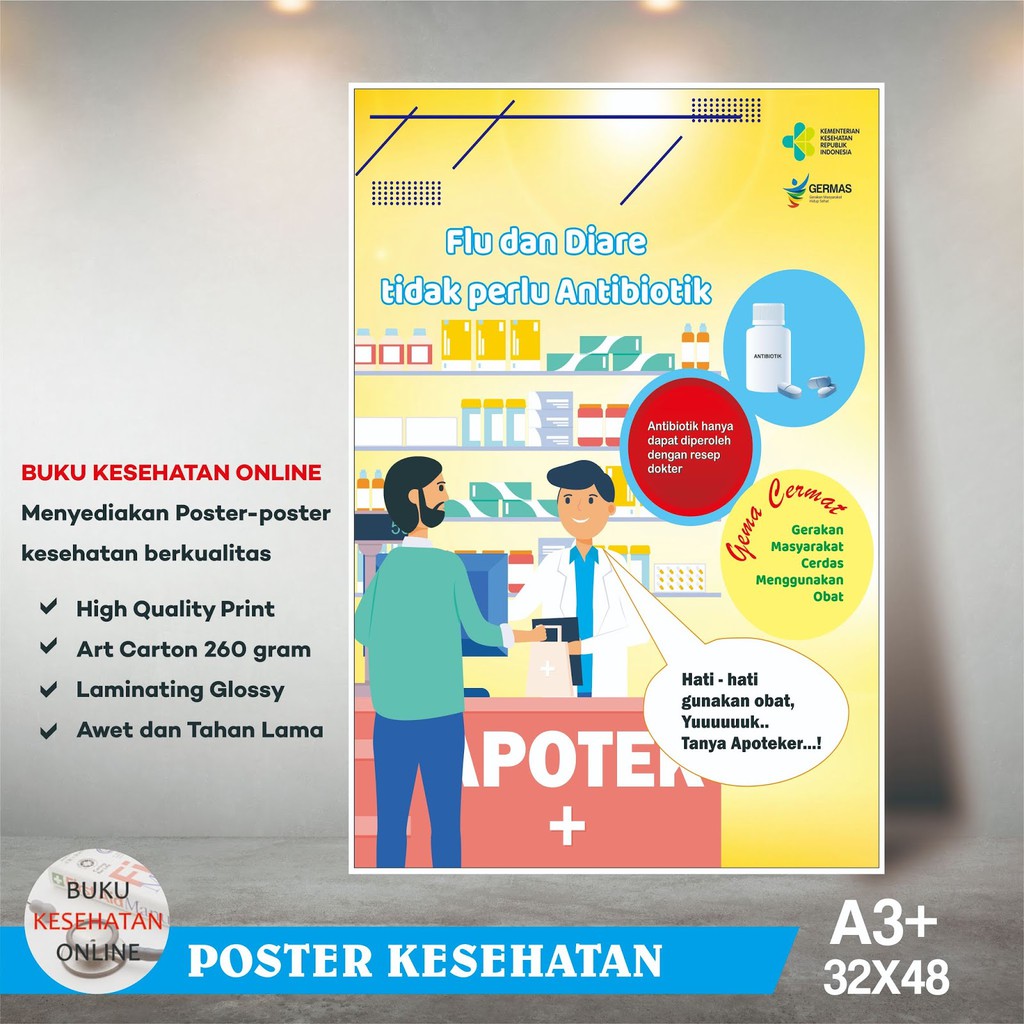 Poster Kesehatan - JANGAN ANTIBIOTIK - LAMINATING GLOSSY | Shopee …