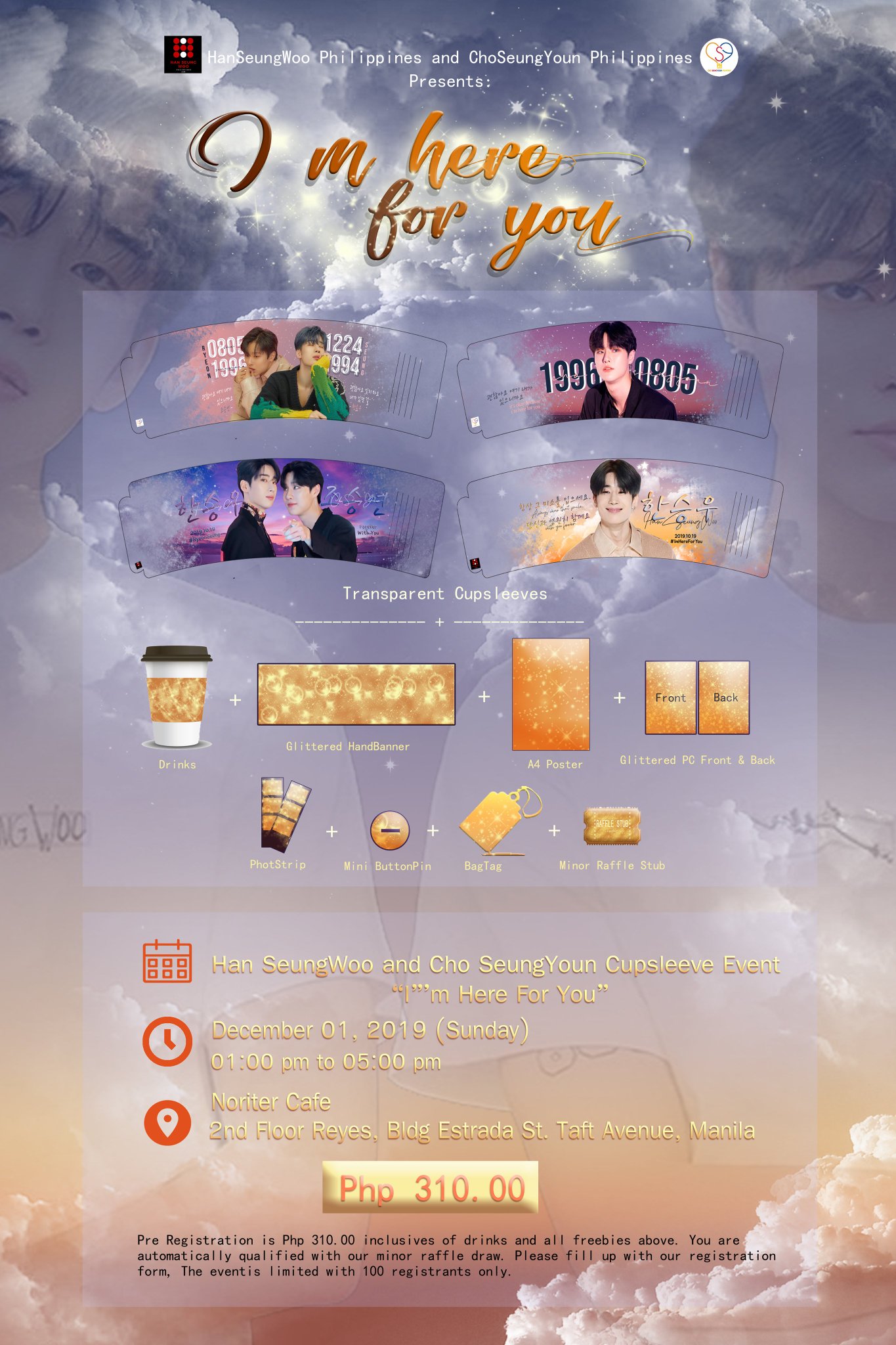 Han Seungwoo Philippines a Twitter: “EVENT FEE: PHP310.00 INCLUSIONS: - 1 Transparent Cupsleeve of your choice - 1 Drink - 1 Glittered Handbanner - 1 A4 Poster - 1 Glittered Photocard -