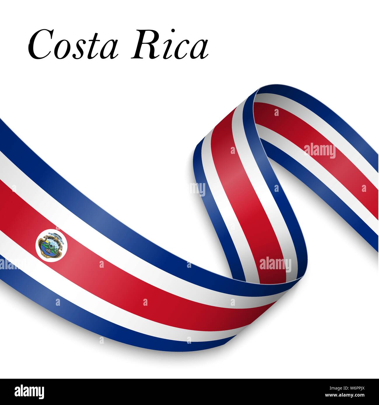 Waving ribbon or banner with flag of Costa Rica. Template for …
