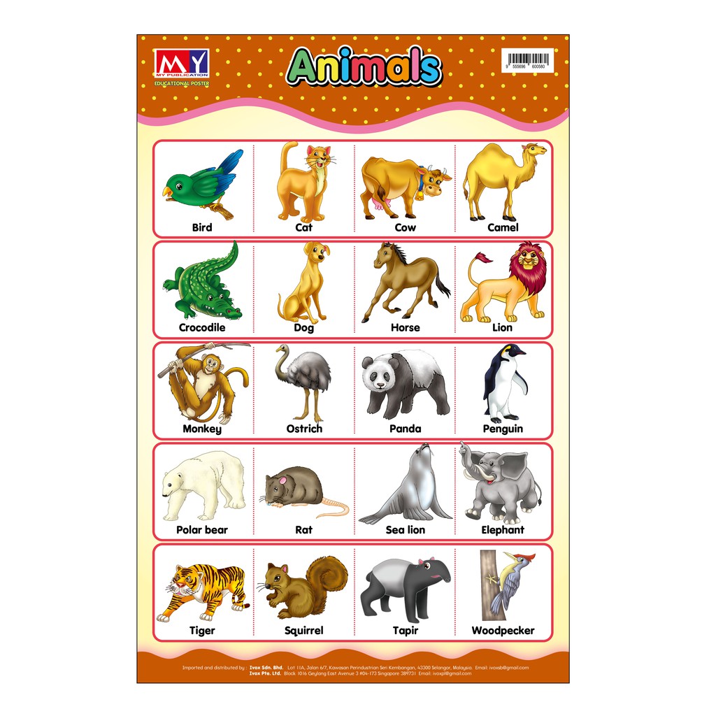 IVOX Education Poster / Children Wall Chart / Kanak-kanak Poster / Pendidikan Poster Gambar for Kids - Animals | Shopee Malaysia