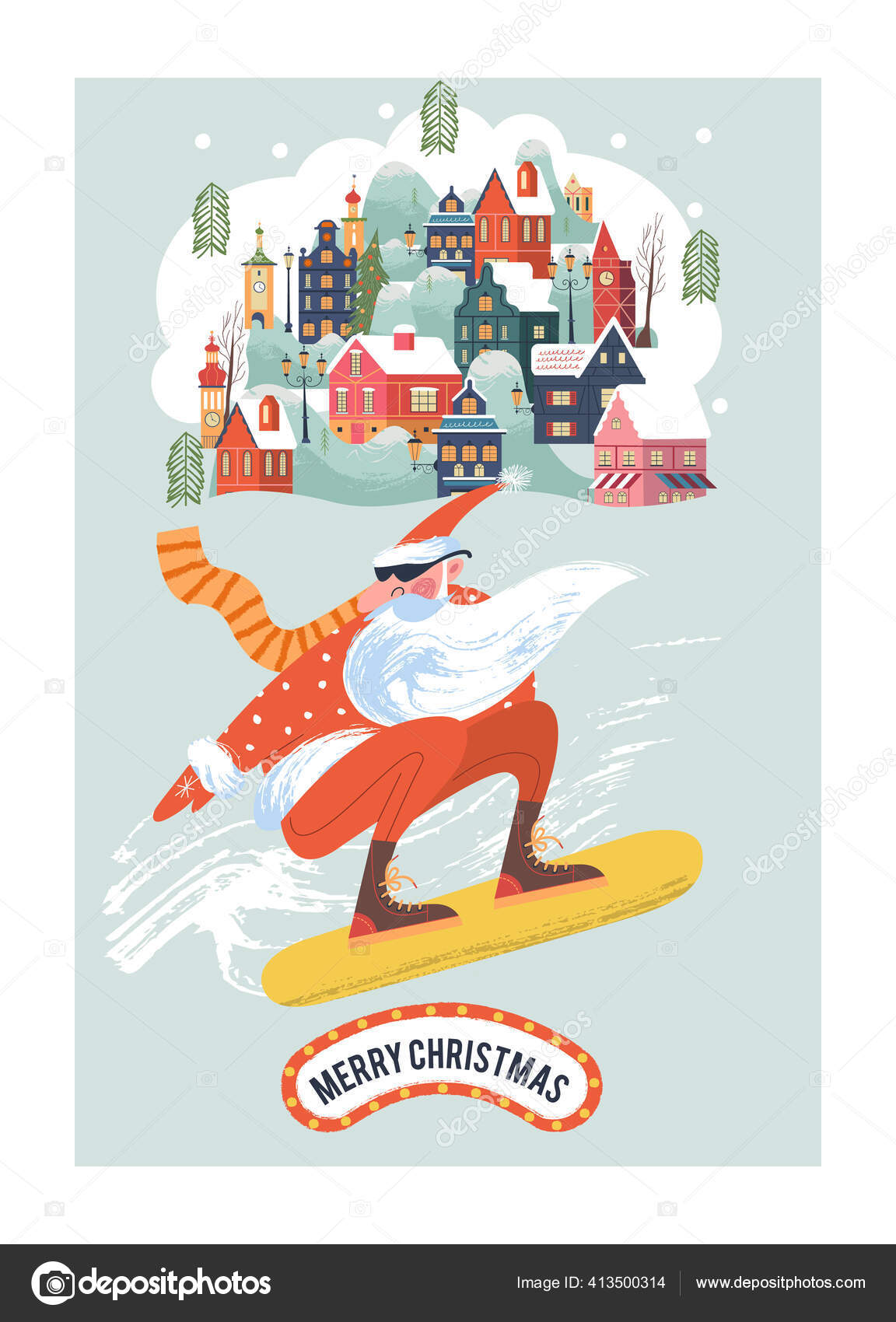 Selamat Natal Santa Yang Keren Atas Papan Salju Bergegas Menuruni …