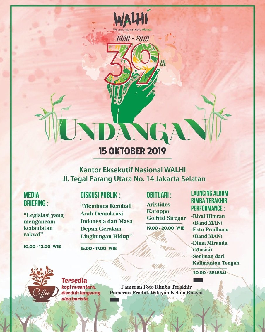 PAPUA ITU KITA on Twitter: “(( 15 Oktober 2019 )) Kamu diundang WALHI nih, Peringatan 39 Tahun WALHI menjadi Buzzer Penyelamatan Lingkungan Hidup di Indonesia Kamu bisa mulai merapat ke Tegal Parang