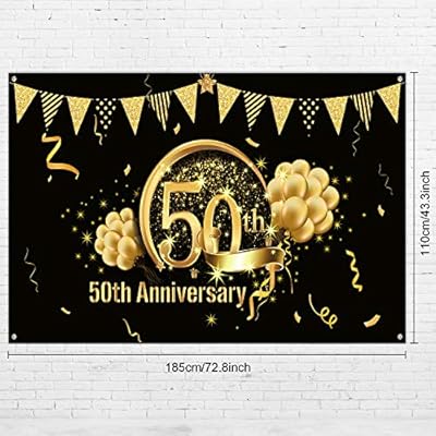 50th Anniversary Decorations, Extra Large Fabric Black Gold Sign …
