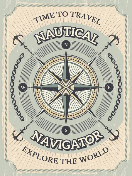 Poster laut. Wind bangkit dan bergaya simbol laut untuk traveler plakat untuk petualangan laut vector retro template — Stok Vektor © ONYXprj #391583560