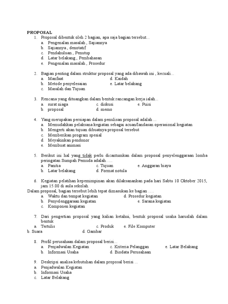 Contoh Soal Pilihan Ganda Tentang Proposal - Berbagi Contoh Proposal