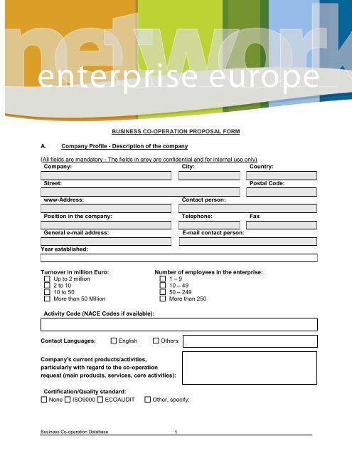 BUSINESS CO-OPERATION PROPOSAL FORM A. Company Profile …