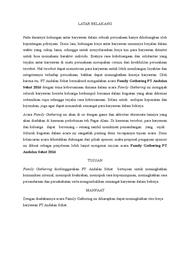 Contoh Proposal Kegiatan Family Gathering Perusahaan - Berbagi Contoh Proposal