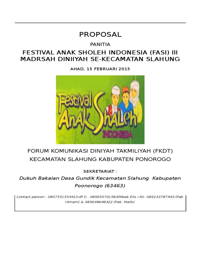DOC) PROPOSAL FESTIVAL ANAK SHOLEH INDONESIA REMAJA MASJID SAIIDIYAH TANGKIT BARU MAHASISWA KKN STAI MA’ARIF JAMBI TAHUN 2019.docx | Lide Eider - Academia.edu
