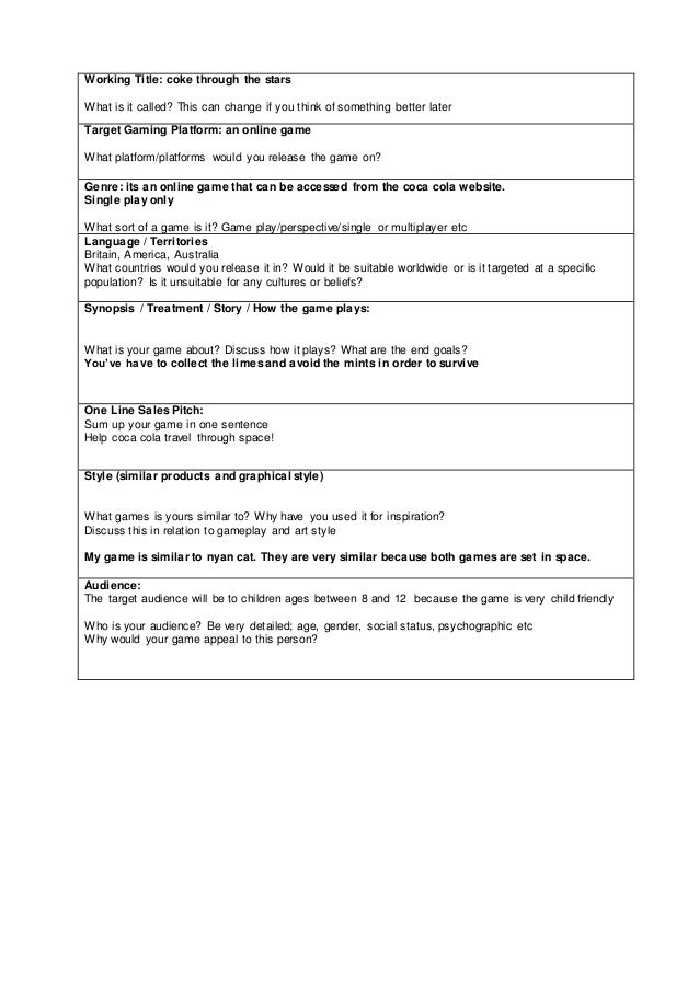 Fillable Online Video Game Proposal - Computer Science Fax Email Print - PDFfiller