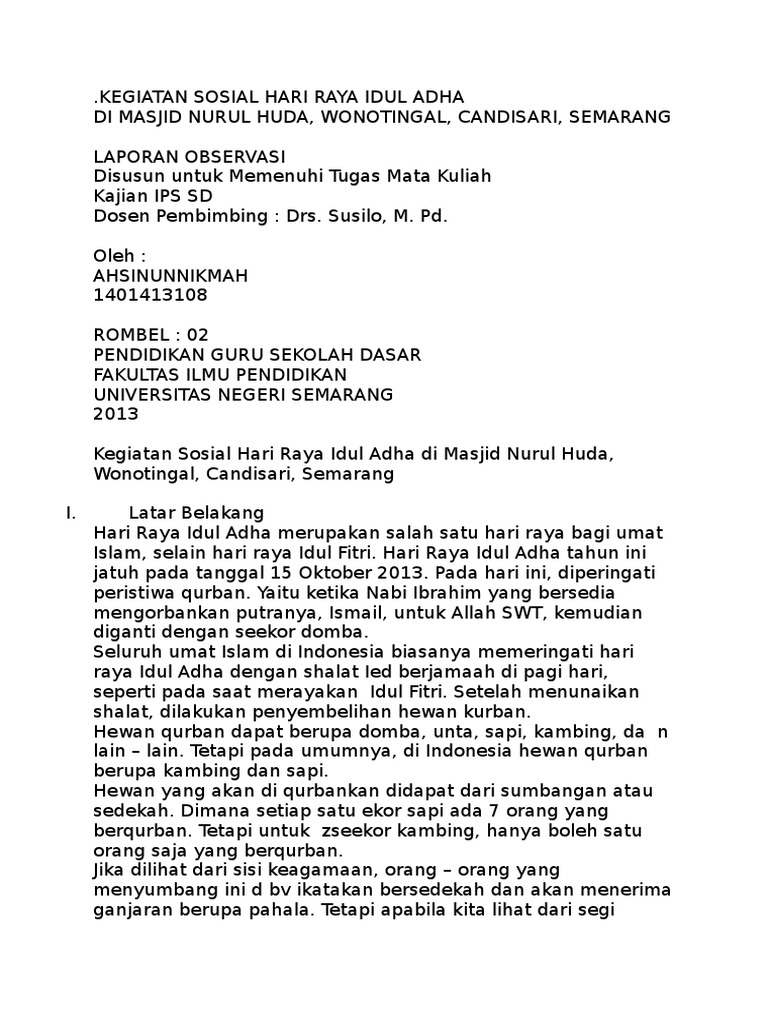 Contoh Laporan Kegiatan Idul Adha Di Sekolah - Kumpulan Contoh Laporan