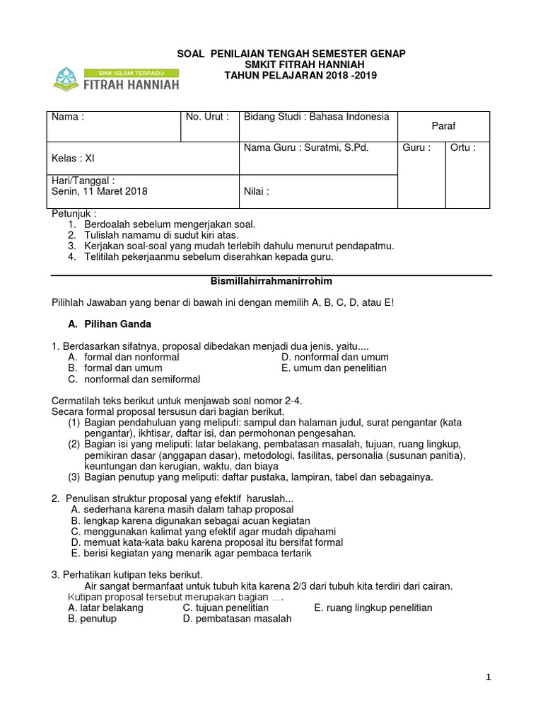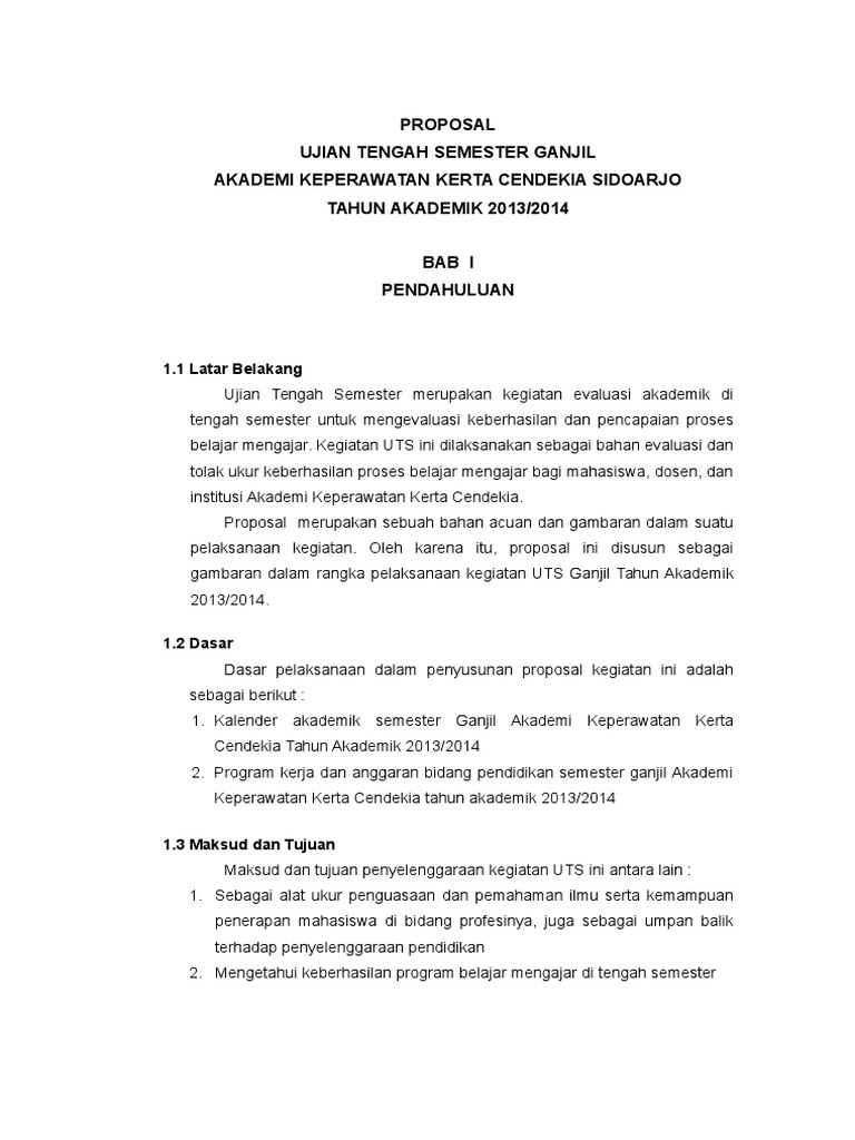 DOC) PROPOSAL PENYELENGGARAAN UJIAN TENGAH SEMESTER GANJIL TAHUN PELAJARAN 2013/2014 | Arif Rahman Hakim - Academia.edu