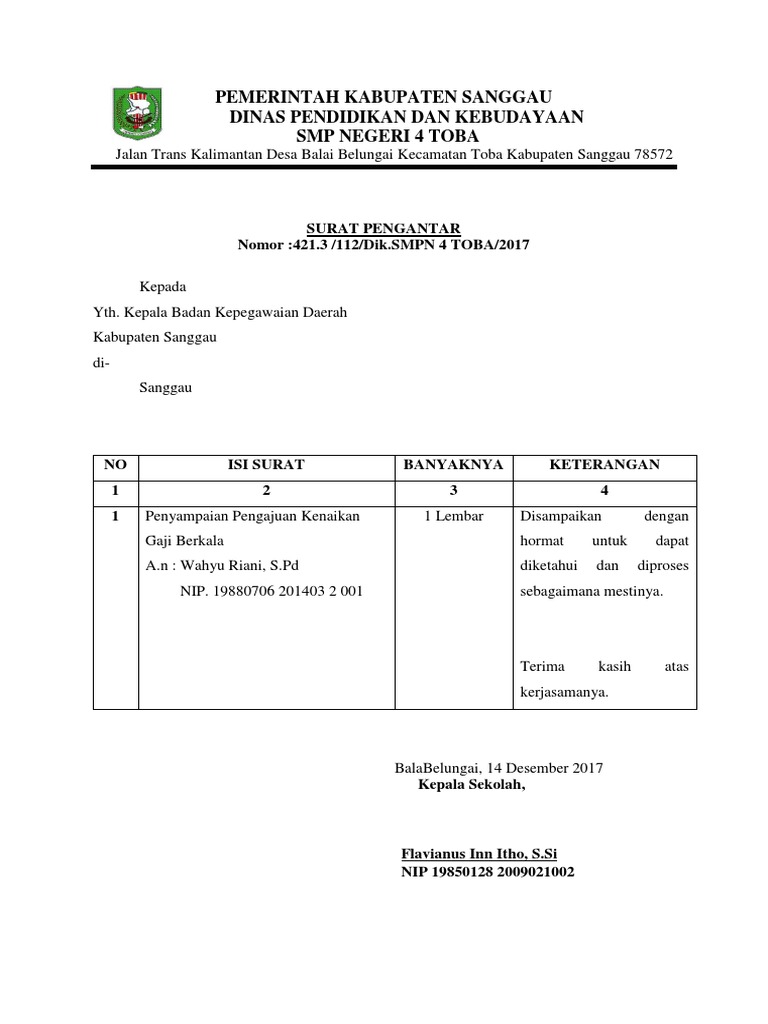 Surat Pengantar Kenaikan Gaji Berkala