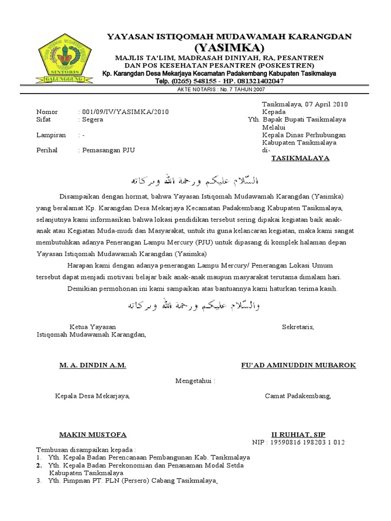 contoh Surat Permohonan Lampu Penerang Jalan (LPJU)