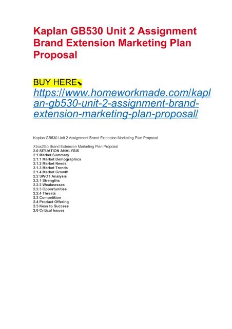 Kaplan GB530 Unit 2 Assignment Brand Extension Marketing Plan Proposal