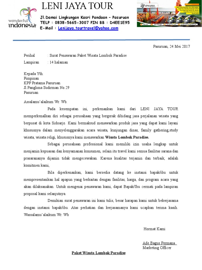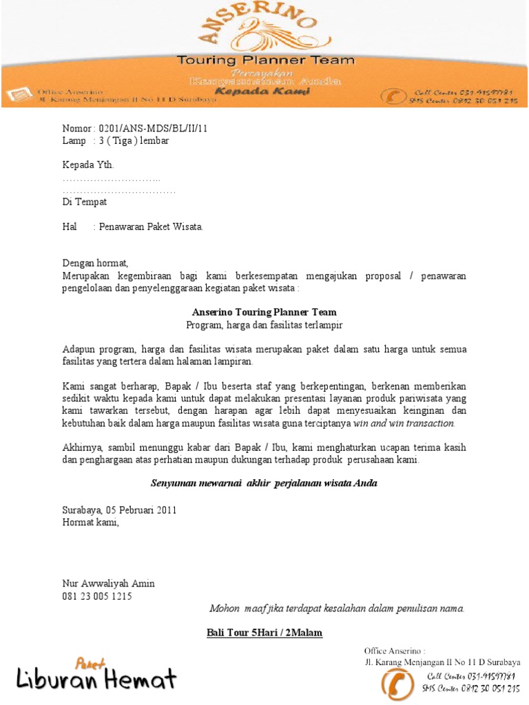 Contoh Surat Penawaran Paket Wisata - Mosaicone