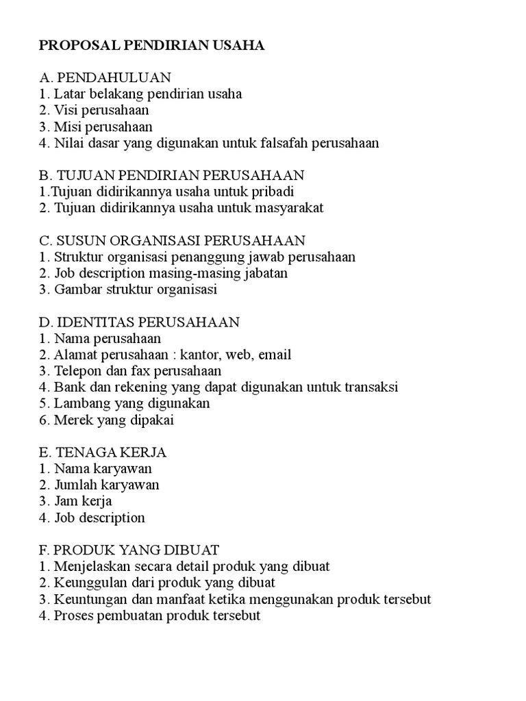 PDF) FORMAT PROPOSAL PENDIRIAN USAHA (JUDUL PROPOSAL PENDIRIAN USAHA | Aria Winjaya - Academia.edu