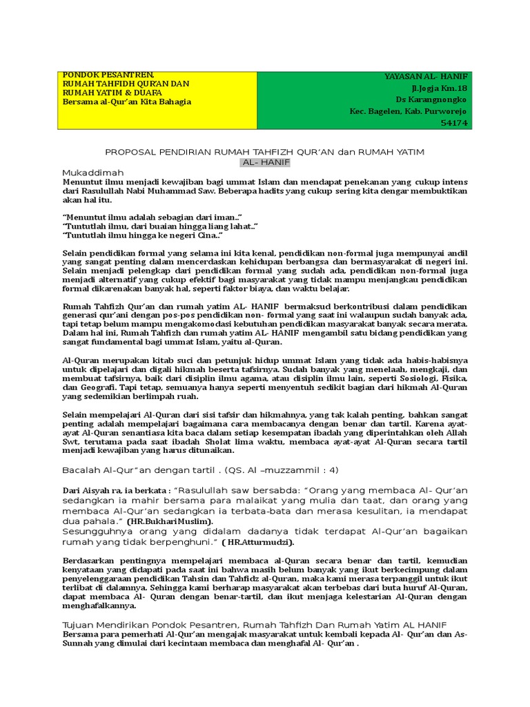 Proposal Pendirian Pondok Pesantren Tahfidz Al Qur - PDF Free Download