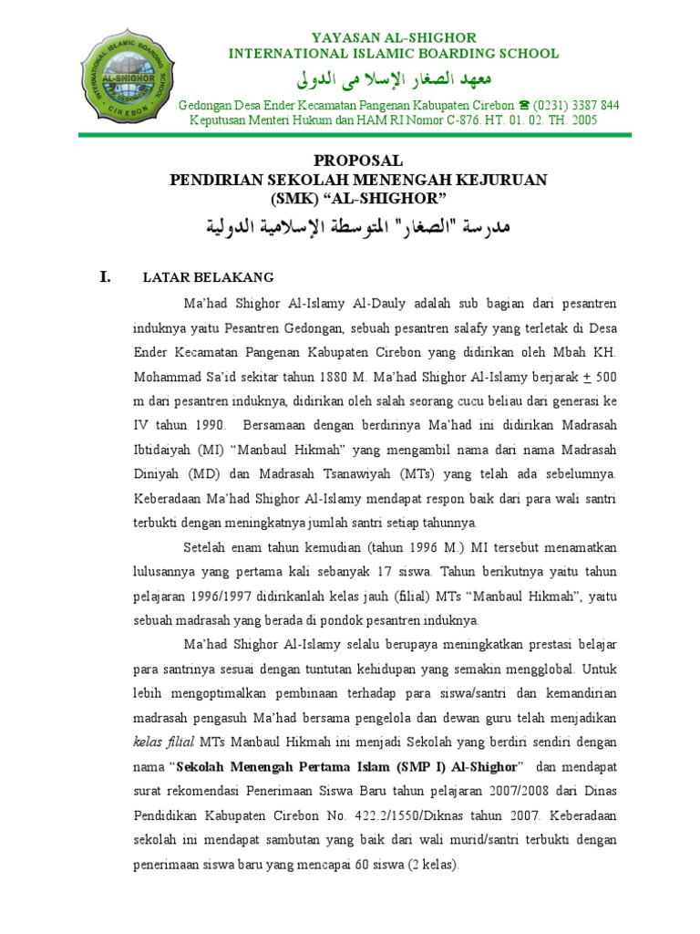 DOC) PROPOSAL PENDIRIAN SMK ISLAM AL-MU`AMMILIN | irpansyah putra - Academia.edu